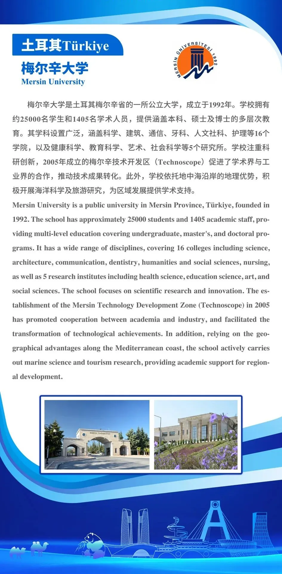 高校科研,创新之源! 本期聚焦三所国际知名高校合作需求 伊朗大不里士大学 (全球水资源第16,农学、工程前200) 寻求国际科研合作 土耳其梅尔辛大学 (技术开发区Technoscope促进产学结合) 期待技术交流 希腊国际希腊大学 (IHU,全英授课,可持续发展研究所) 致力于推动国际合作 连接全球学术力量 共促技术转移与人才培养
