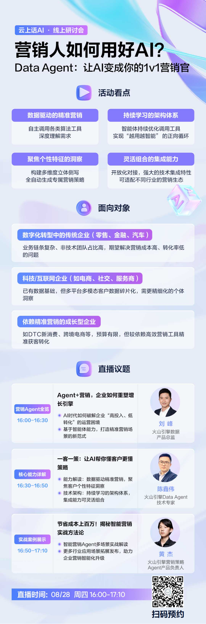 开设【“满天星”专题-火山引擎·云上话AI】系列直播。